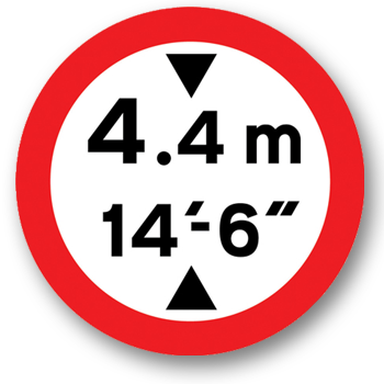 The triangular shapes above and below the dimensions indicate a height restriction that applies to the road ahead.