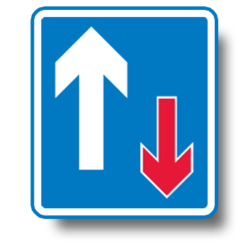 Don't force your way through. Show courtesy and consideration to other road users. Although you have priority, make sure oncoming traffic is going to give way before you continue.