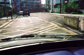 Q #275 - What's the reason for the yellow crisscross lines painted on the road here?